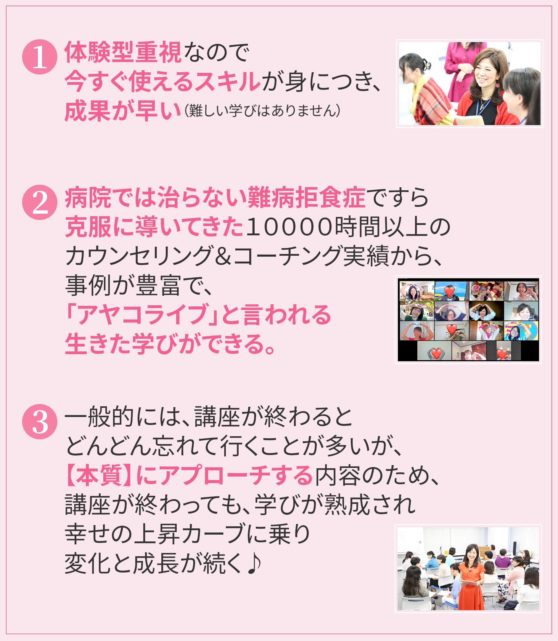 生きる上で『本当に大切な事』に気付ける講座で、唯一無二だと思います!