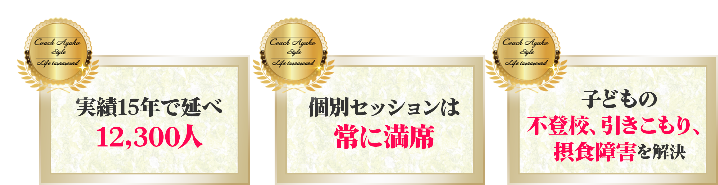 アヤコ先生の明るい自信にみちたオーラが決め手となり、アヤコ式なら解決できる!と思い申し込みました。