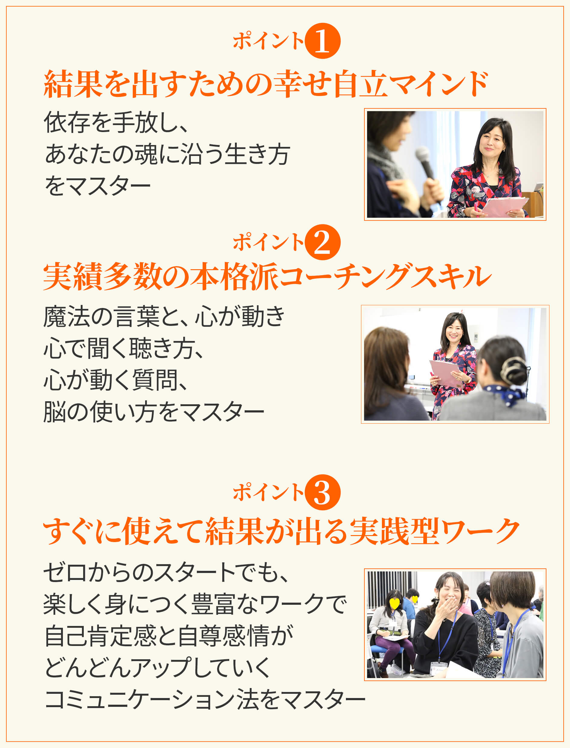 この講座は本格派コーチングスキルによって、自分も周りも幸せに導きながら、自然体で幸せになる講座です。